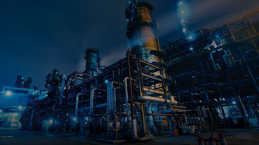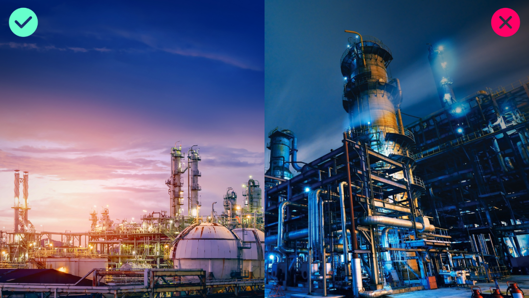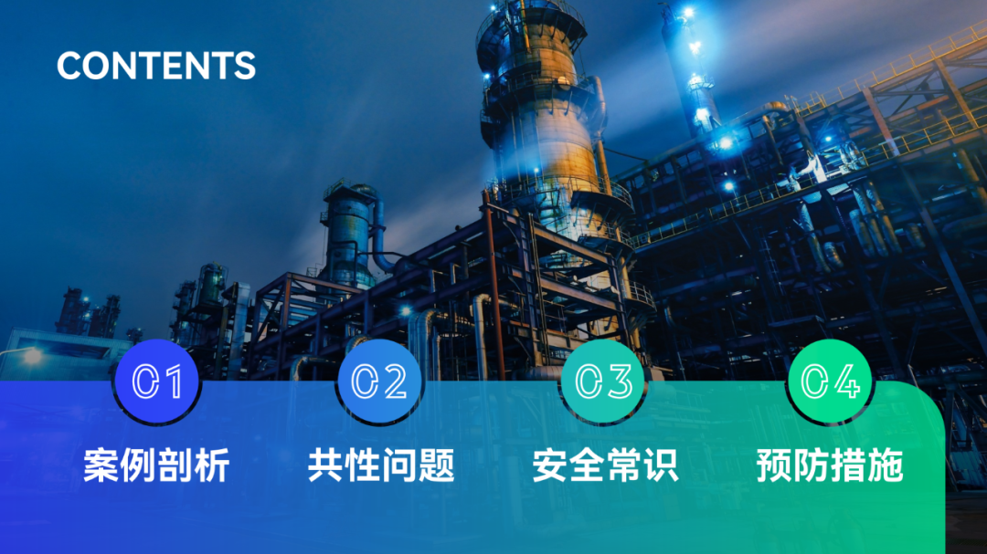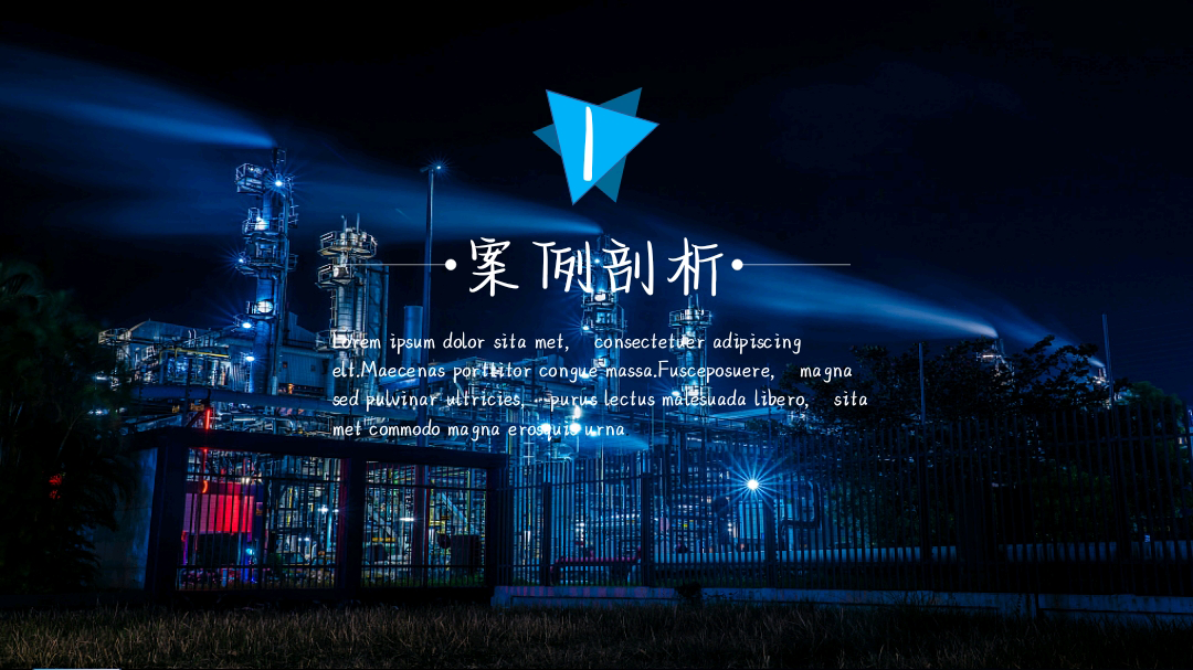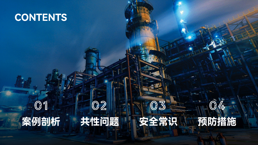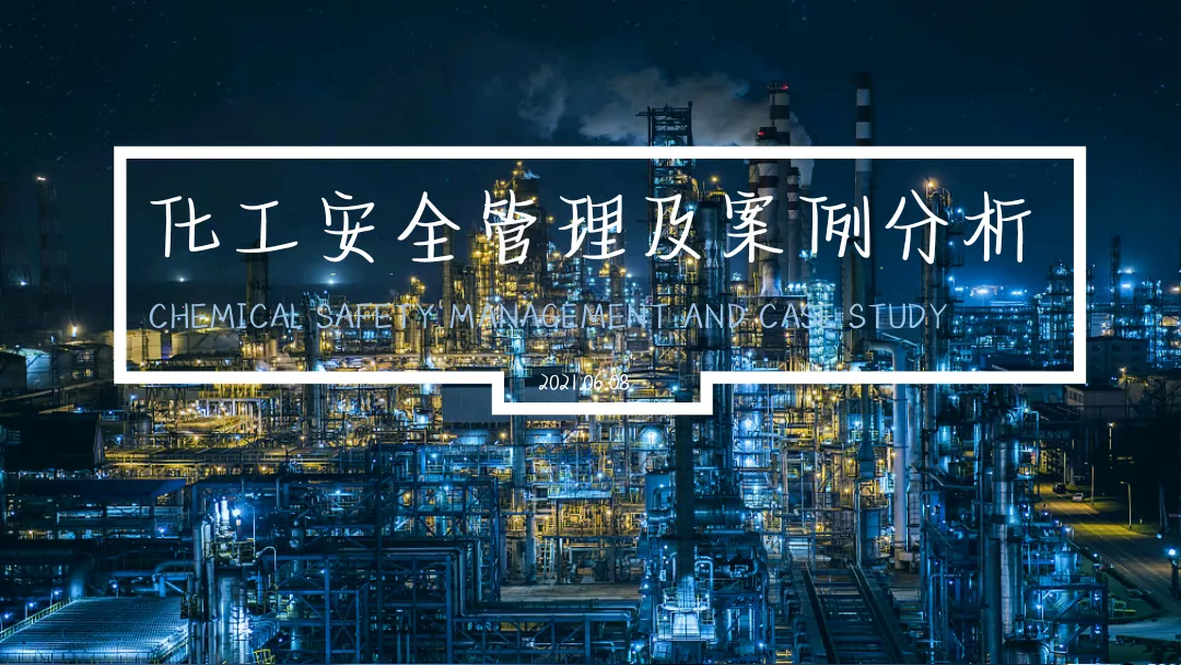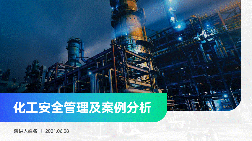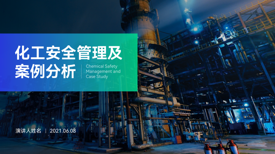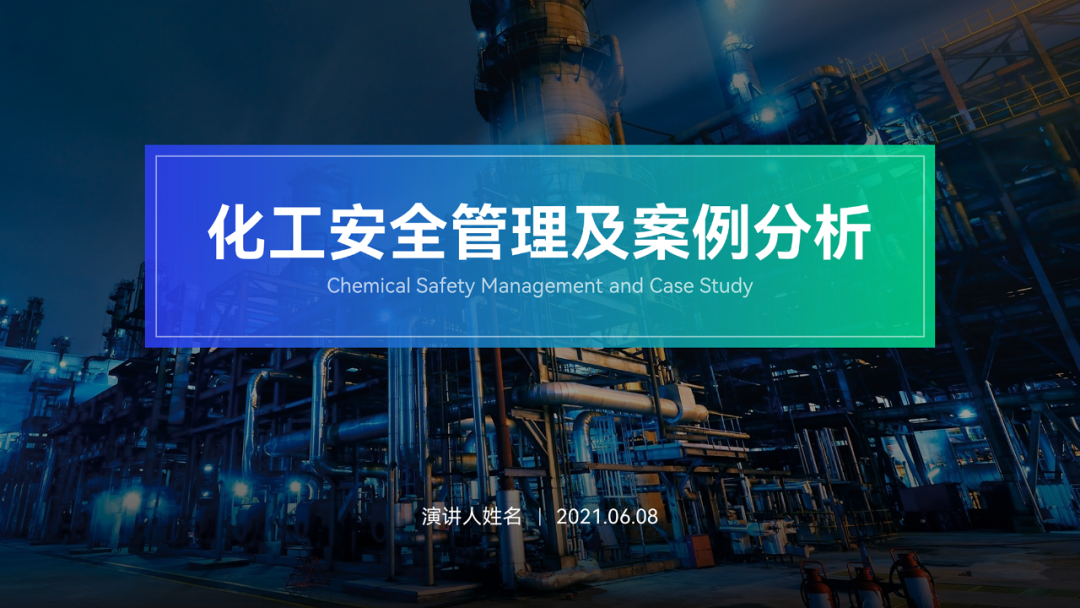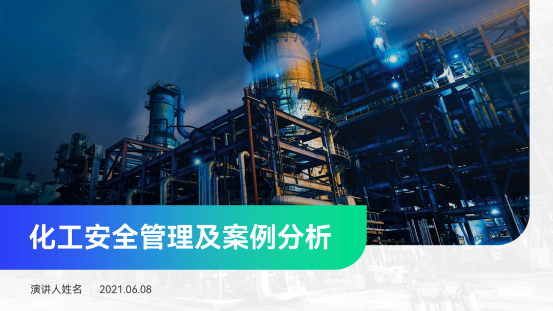 背景选用化学工厂的照片,方向没毛病,贴合主题。但是图片主体内容杂乱,有些影响文字的呈现。