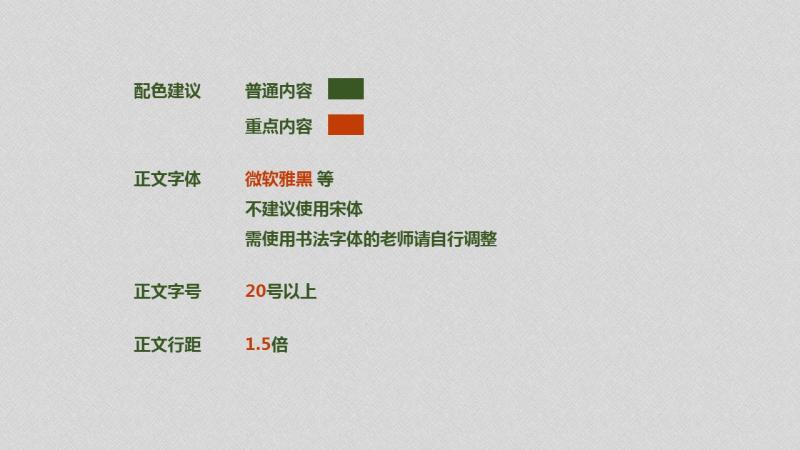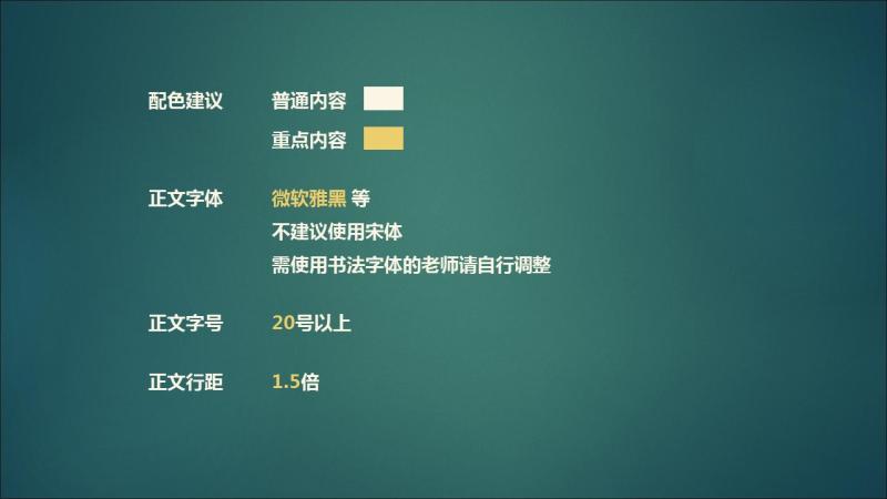 对松江区高三学生,除了市级统一的资源课程外,还有“一区一策”“一校一策”的视频录播课,都采用了这套护眼配色方案。解放日报·上观新闻记者看到,这套配色方案中,给出了9种底色方案,包括白色、浅灰、米色、绿色和黑色等。不同的底色方案上,普通文字内容、重点文字内容分别列出建议使用的具体颜色,比如:底色是米色,普通文字内容推荐使用黑色,重点文字内容推荐使用红色。正文推荐字体为微软雅黑,不建议使用宋体,需要使用书法字体的老师请自行调整。正文字号建议20号以上,正文行距建议1.5倍。字体采用低亮度,避免屏幕过于刺眼。