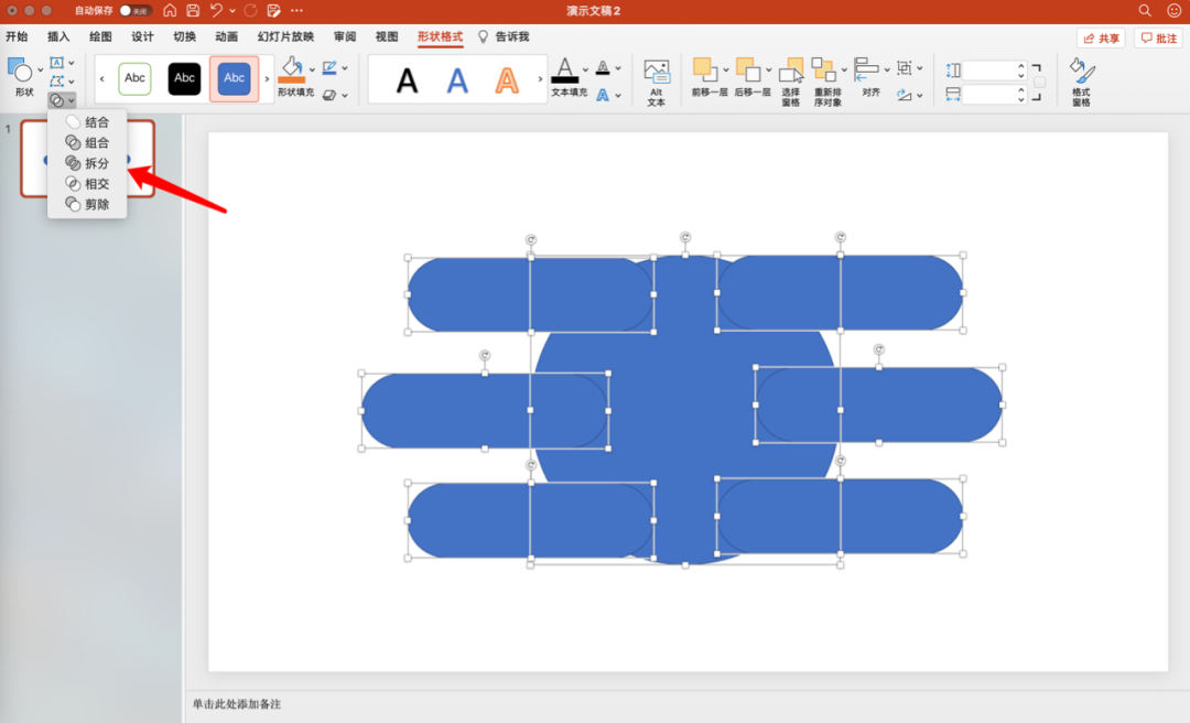 拆分后,将中间的圆形删除掉,就得到了信息图的初始形状。