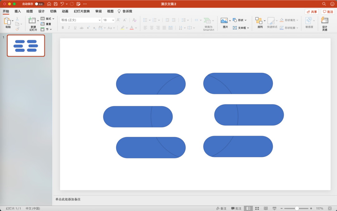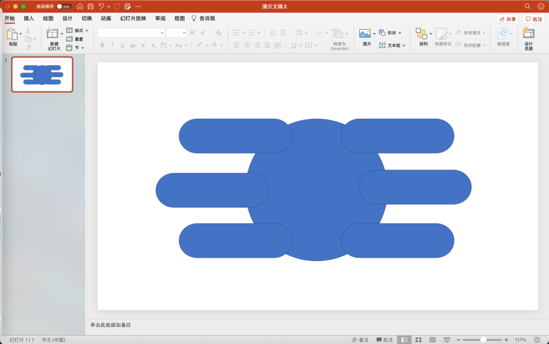 首先,新建PPT模板,画好圆形和四个圆角矩形,