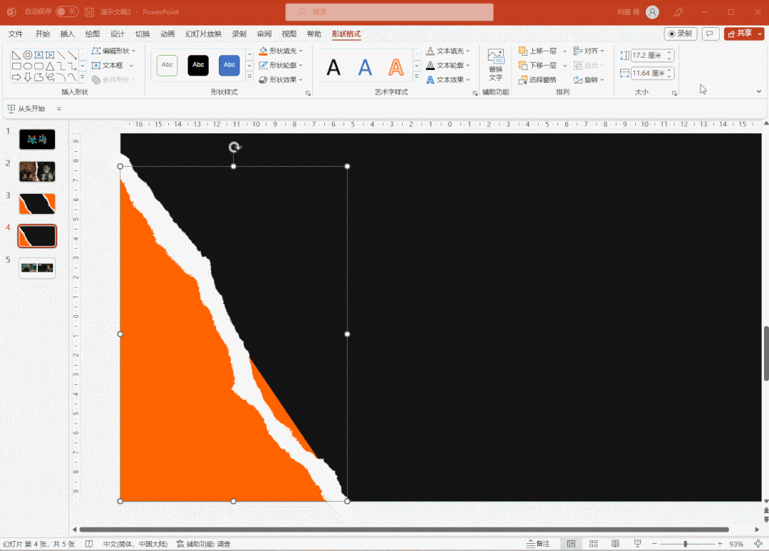 这里可能会有小伙伴比较好奇,右边的橙色三角形怎么和撕痕贴合的?