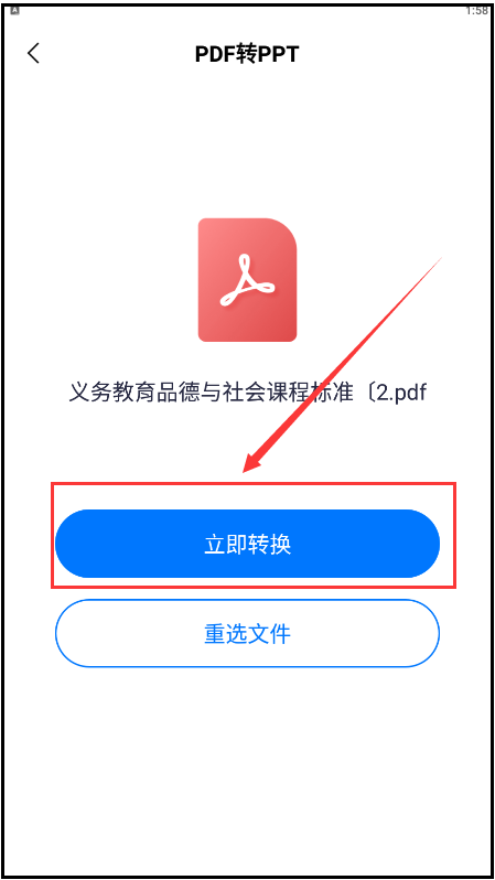 第四步 文件出现在最后的转换界面的时候,我们依然有回旋的余地,此时发现文件添加错了也没关系,点击【重选文件】就行啦,没有其他问题就可以点击【立即转换】,到这里就开始转换了,就只有以上这几步,超级简单有没有?!