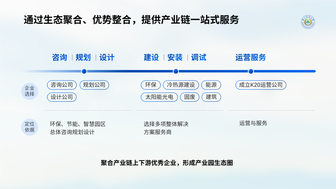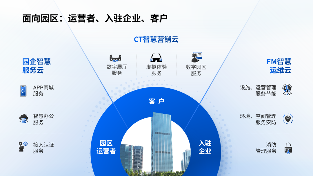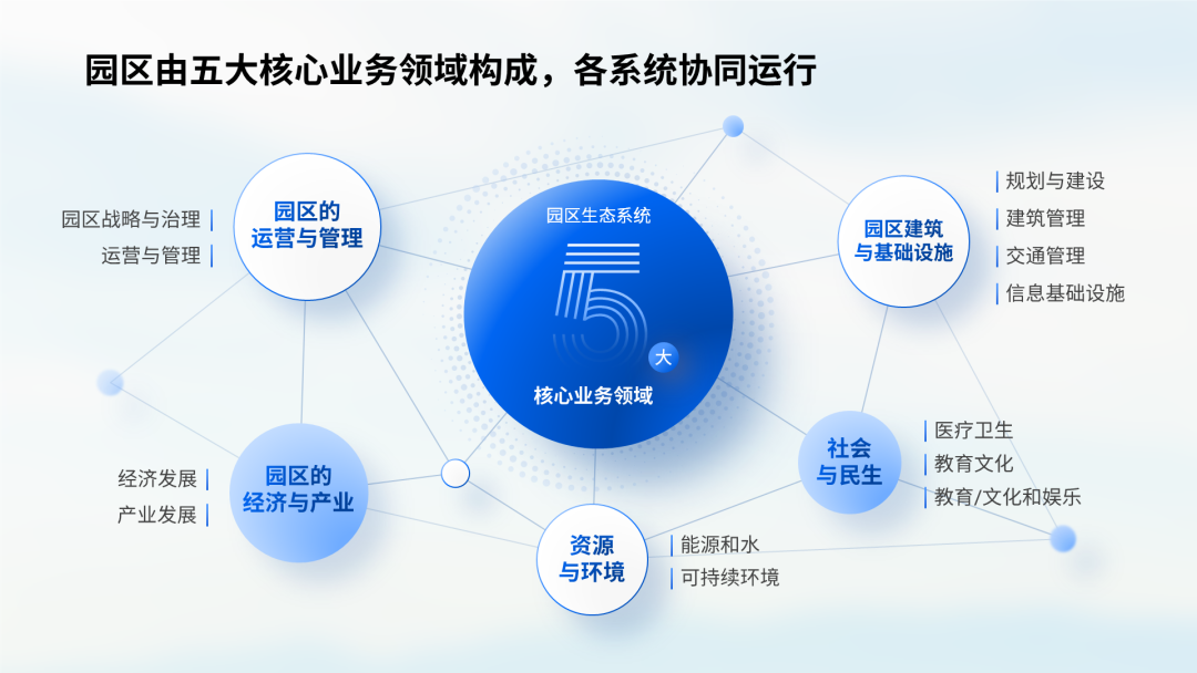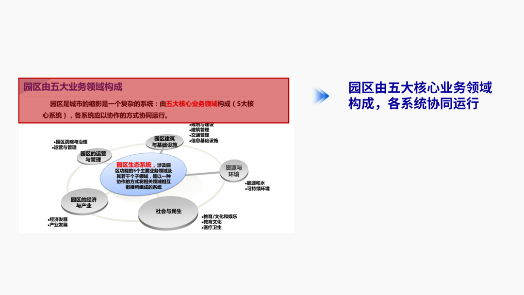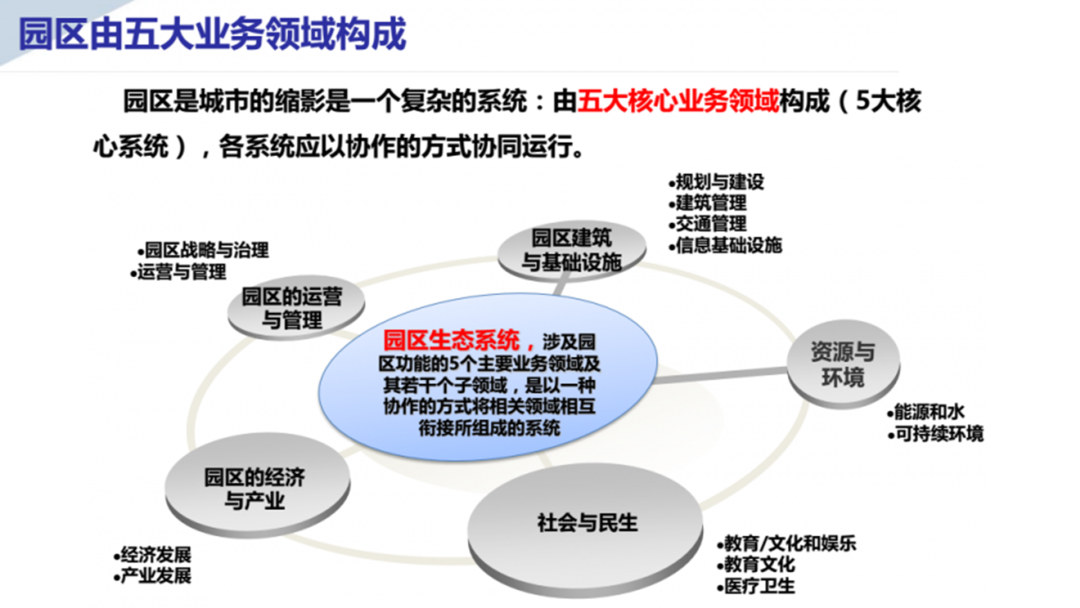 这张图要表达的是园区生态系统的组成和工作方式: