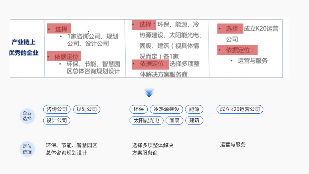 可以看出,页面标题和段落中的内容有信息重复,都是讲述园区的业务构成和关系,这里综合两个部分做提炼和总结,作为页面标题: