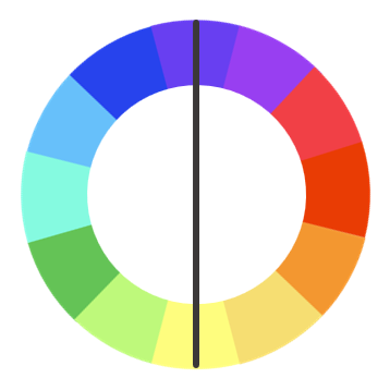 如果你选择紫色,画一条直线,得到的就是黄色,它是紫色的互补色。