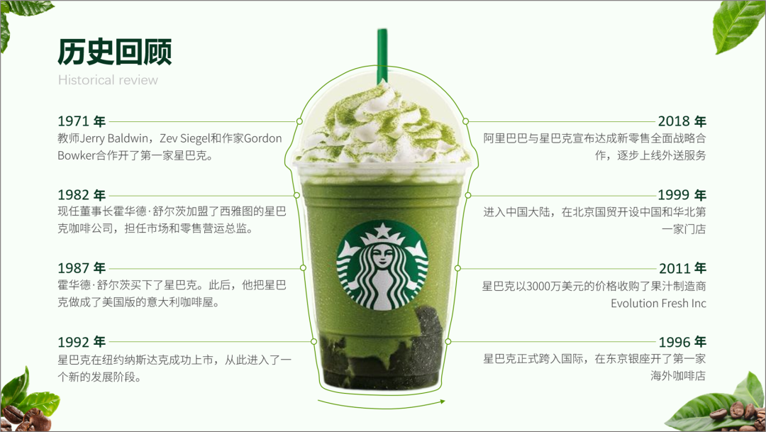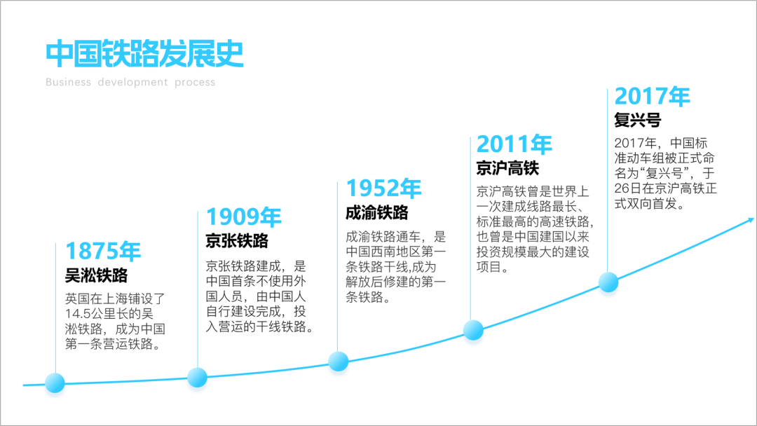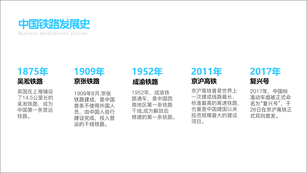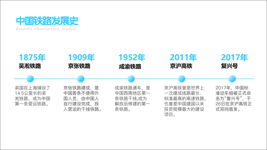 这页PPT就缺乏可视化的概念,他这就不是时间轴,属于大段文字的堆砌,一点不直观。