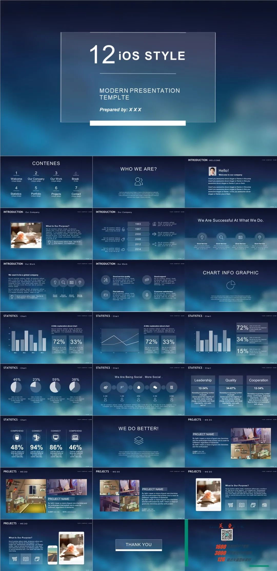 3.苹果IOS风格一向是扁平风格的代表,这几套PPT都非常有商务范高级感