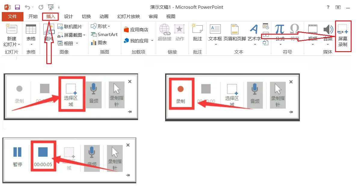 点击选择区域在出现的录屏工具框中,点击选择区域---点击录制---点击完成按钮