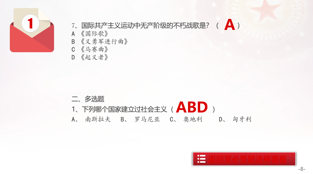 Hello大家好,我是帮帮。今天跟大家分享一张建党100周年党史学习知识竞赛PPT,自带题库资料,自动跳转动画。