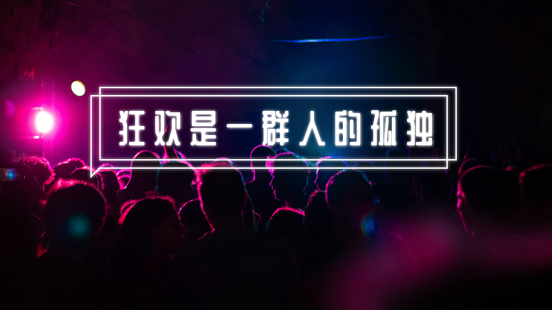 为了与背景图主题相吻合,我用“狂欢是一群人的孤独”作为标题。当然,在字体的选择上也有很大的技巧。