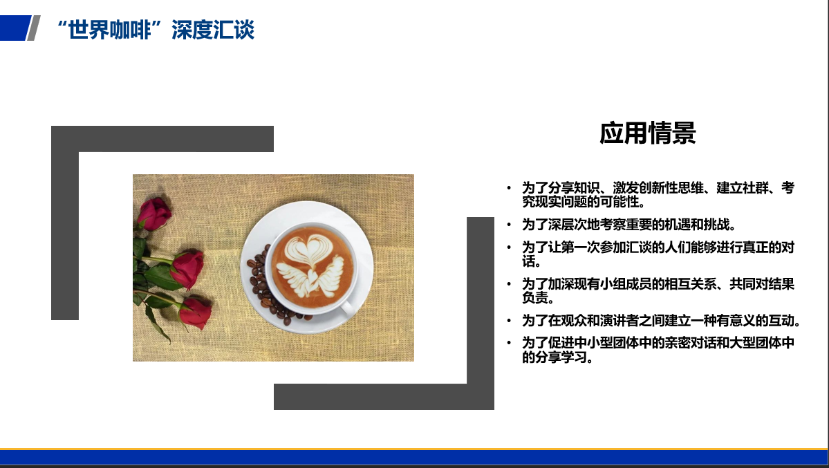 那么,什么样的问题适合采用“世界咖啡”深度汇谈的方法?以下若干种情形下可尝试实用该方法: