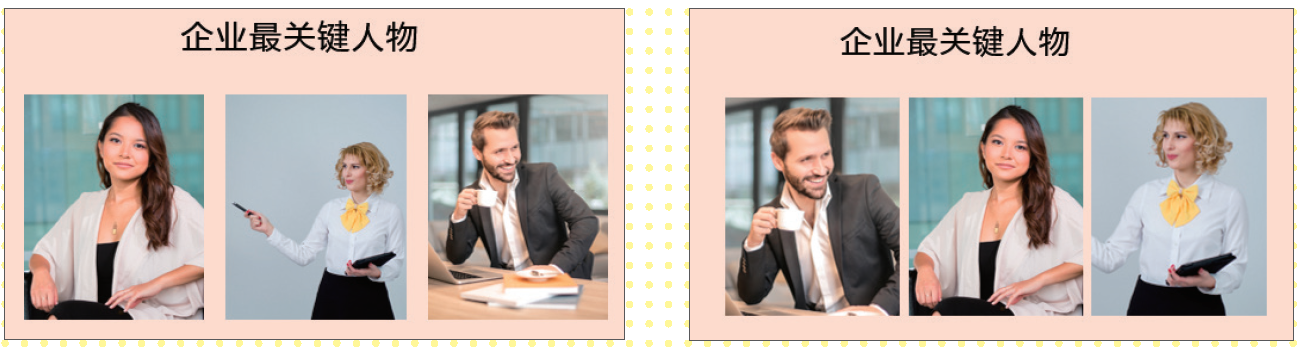 四、人物大小一致。人物大小不一致,不在同一水平线上时会造成视觉错乱,如下左图所示。下右图对图片进行裁剪,视觉干扰减少。