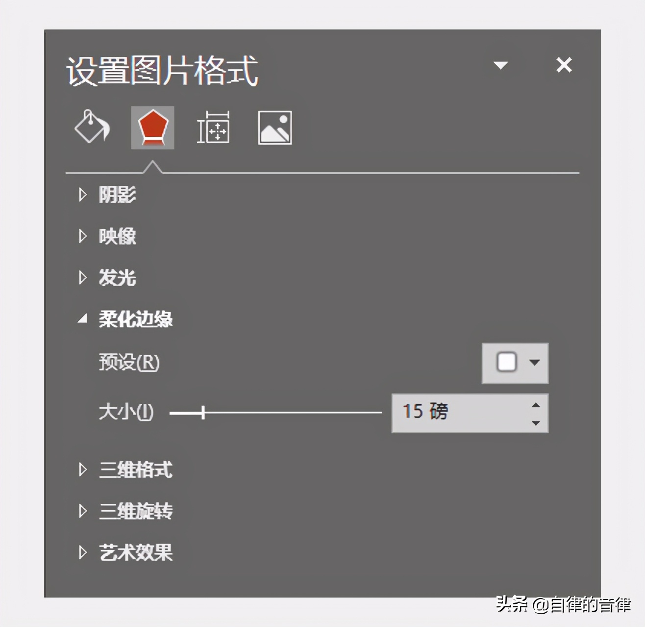 裁剪后,选中图片,调整【柔化边缘】的数值。