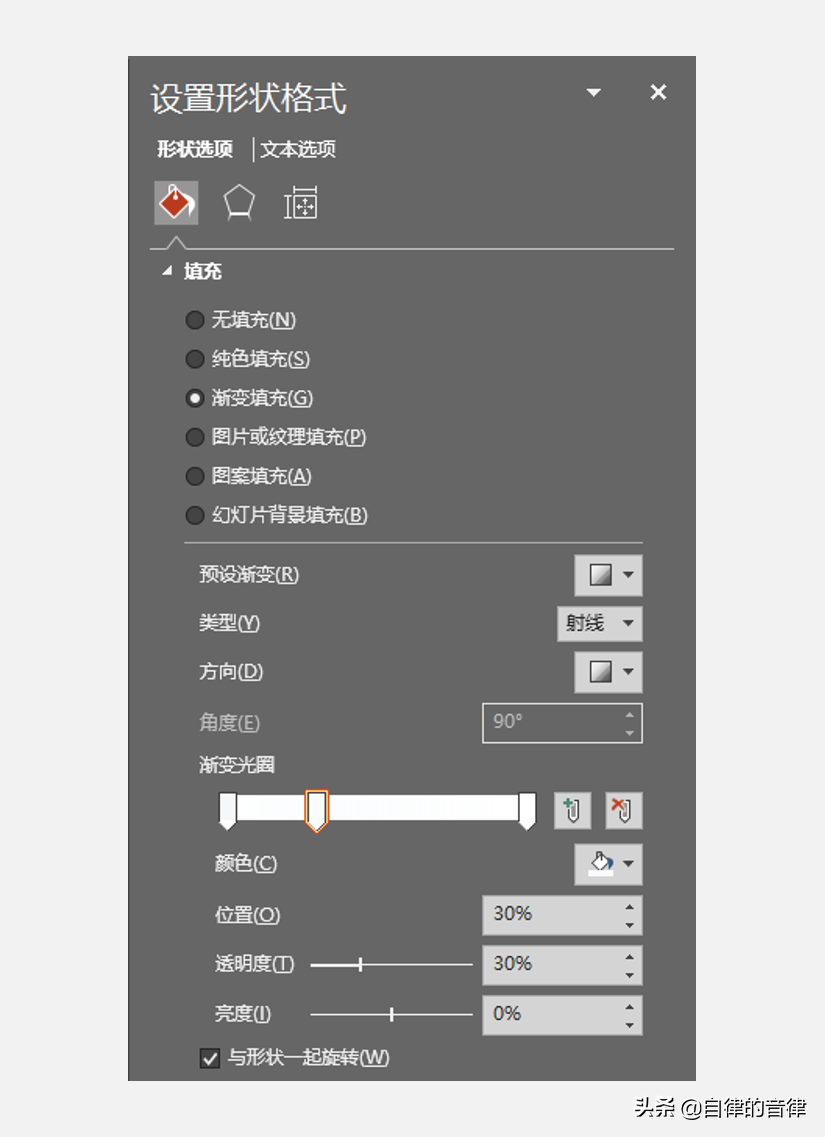 把最中间的透明度,设置为 100%,并把圆心放在想要聚焦的位置。