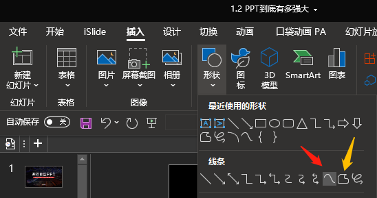 要想掌握PPT鼠绘,需要掌握两个小工具,一个是曲线工具,一个是任意多边形:形状。