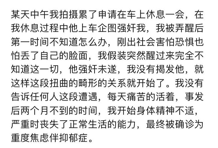 就在讨论度越来越高的时候,她也发了几千字的长文解释,把自己变成一位受害者,称做ppt的前男友一直在对她进行pua折磨,甚至是还有不少家暴行为。项思醒透露二人之所以会展开不正常关系,是因为对方企图对自己不轨,也正是因为这些事情,所以已经患上重度焦虑和抑郁症。