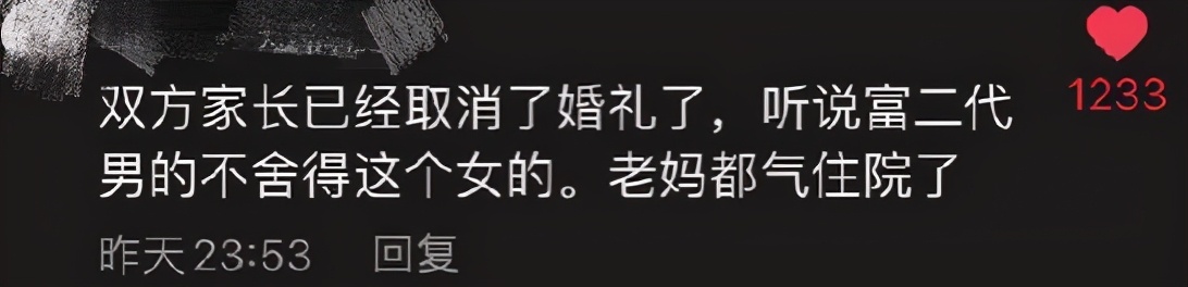 除此之外,这位富二代还在自己的朋友圈发了长文,表示这件事情会让他更加坚强和成熟,同时也没有想到自己会以这样的方式上热搜。就在网友们疯狂讨论的时候,网上又传出了新消息,称富二代的家人已经决定退婚,富二代的母亲也因为这些事情气到住院。据说项思醒收到的彩礼就高达1800万,如果真的是退婚的话,恐怕这笔彩礼也是很难全部要回来的。