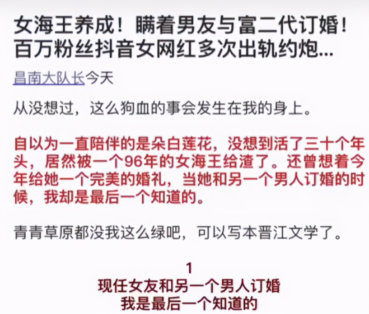 所以从这方面进行分析,她不仅是绿了男友,还绿了与其订婚的富二代。项思醒是拥有百万粉丝的女网红,看起来像是人畜无害,可实际上心机满满,就连男友都忍不住将其称之为“绿茶白莲花”。就在此事发生以后,这位女网红自然也是被全网痛骂,甚至是还被曝光了不少图片和视频。