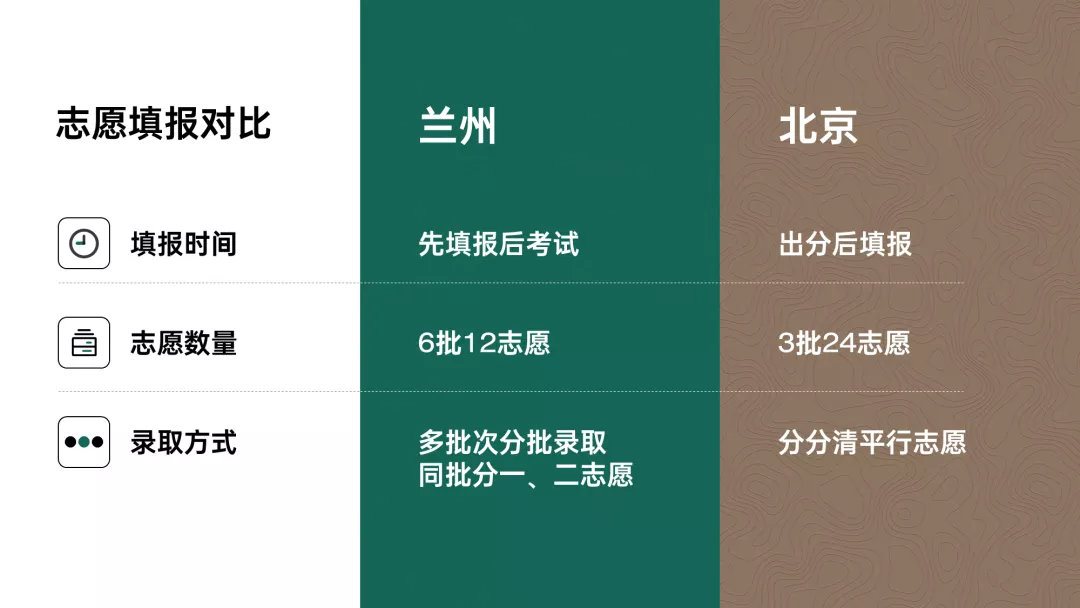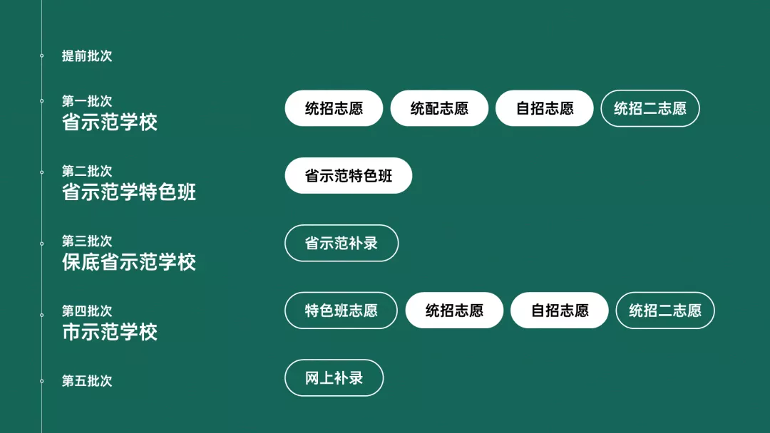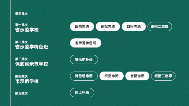其实,我们可以把不同的批次,按照横向或纵向的方式,进行排列,然后,把对应批次和目标内容,放到一起,并把报考志愿的类型,单独放在一起: