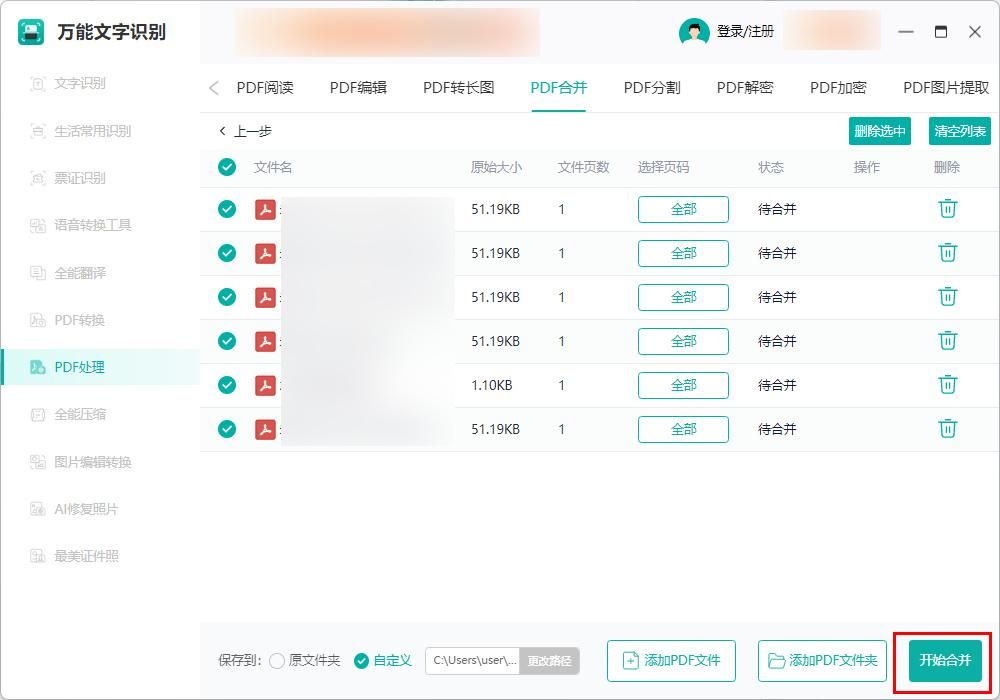 ③导入文件后,在底端设置好我们文件保存的路径,最后点击【开始合并】。