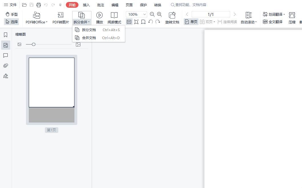 ①用WPS打开PDF文件,选择【开始】菜单栏里的【拆分合并】即可。