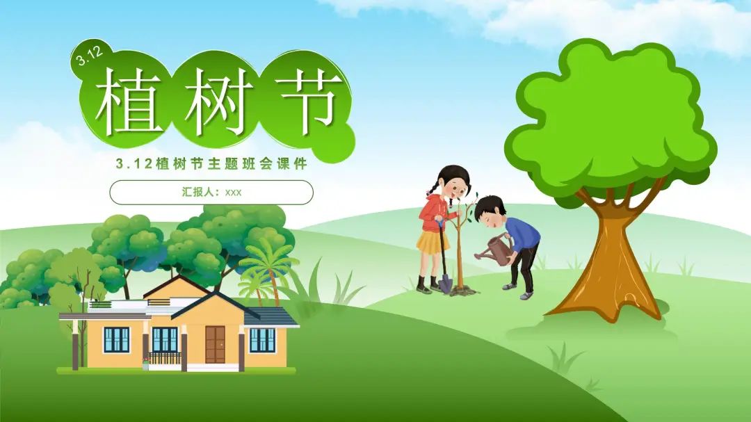 可爱卡通风3.12植树节主题班会课件ppt模板