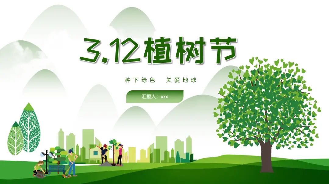 种下绿色 关爱地球——环保绿小清新3.12植树节ppt模板