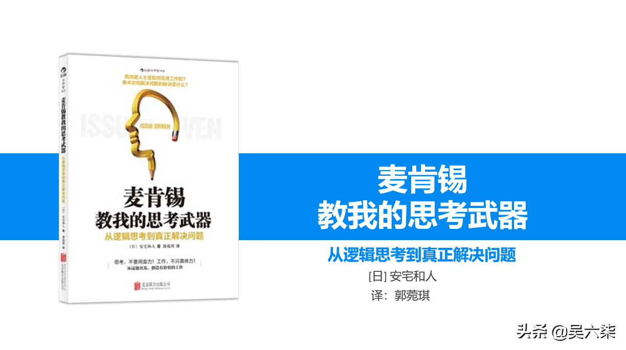 首先,这套PPT内训资料(共计18页)是基于《麦肯锡教我的思考武器》这本书延伸而出,基于作者在麦肯锡公司工作时积累的丰富经验以及脑神经学的专业背景,设计出一套极具逻辑性的问题解决思维模式。