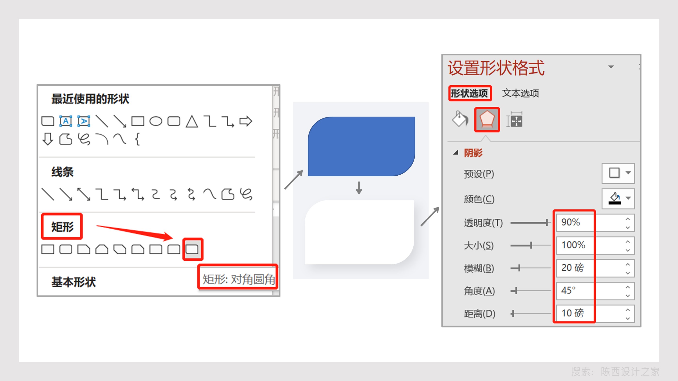 圆角矩形,还有单圆角矩形在PPT里面可以直接找到的。