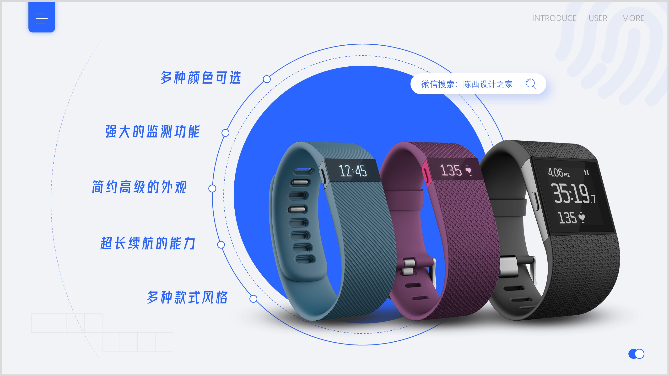 可以考虑使用这里的排版设计样式,排版上产品图,借助圆形以及线条,将优点依次展现即可。