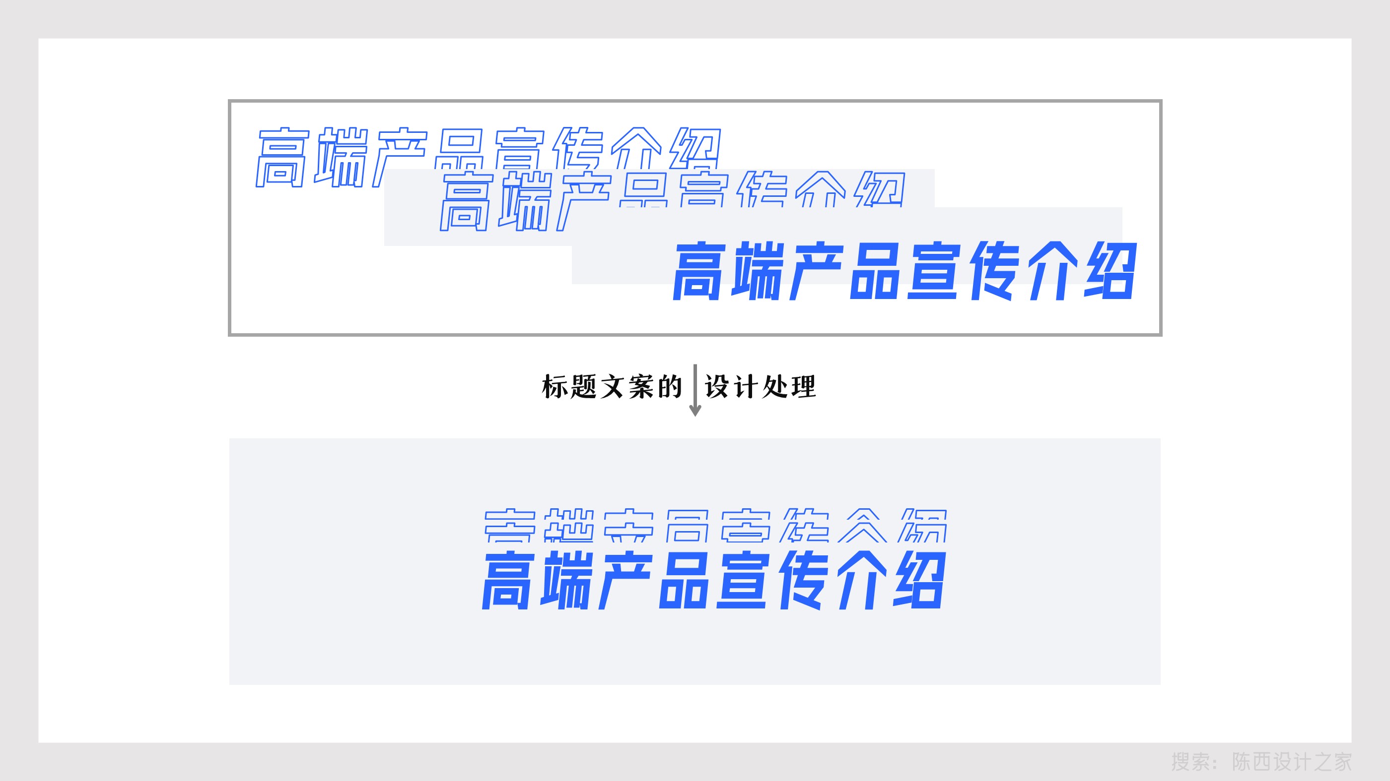 复制三个一样的标题文字,其中两个设置无填充,蓝色边框。