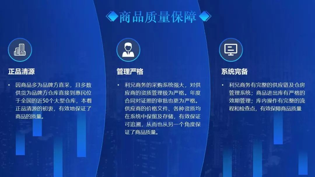 这一页主要讲的商品质量保障,主要有三点内容。