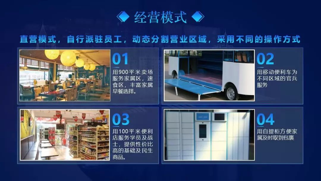 这是一个经营模式的介绍页,主要有四点内容,而且是并列的结构。