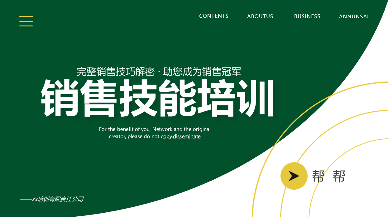 2.今天跟大家分享一张全内容销售技能培训PPT模板,完整架构专业课件,演示培训拿来就用。