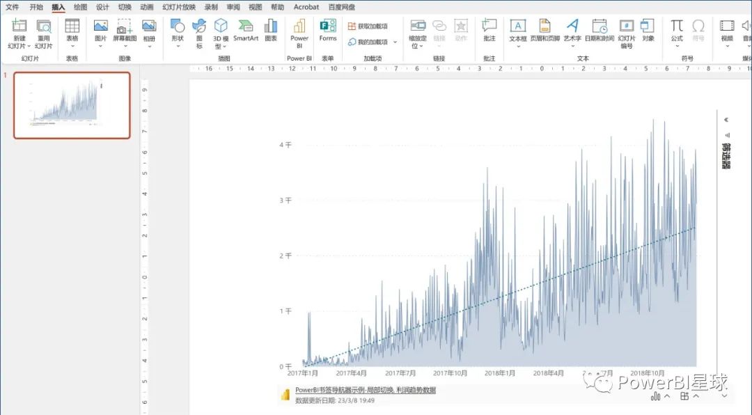 现在,PPT和PowerBI更完美结合,可以将PowerBI单个图表插入,同时自动生成数据见解,在PPT中展示PowerBI数据的更加灵活了。