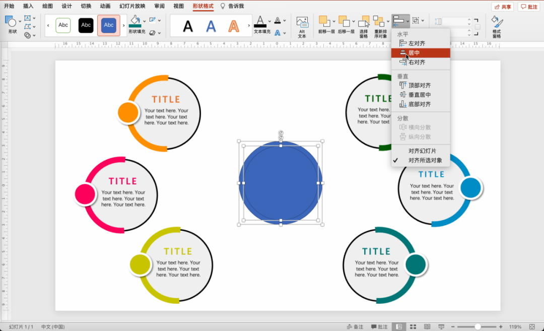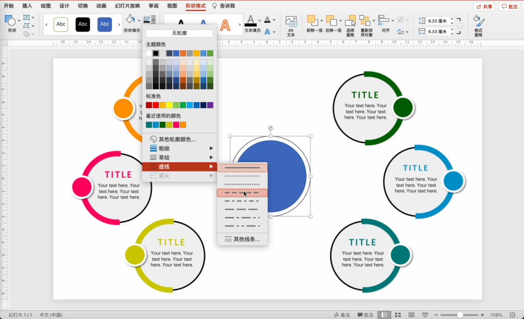 页面正中间插入圆形,无填充,边框保留或加粗一些。