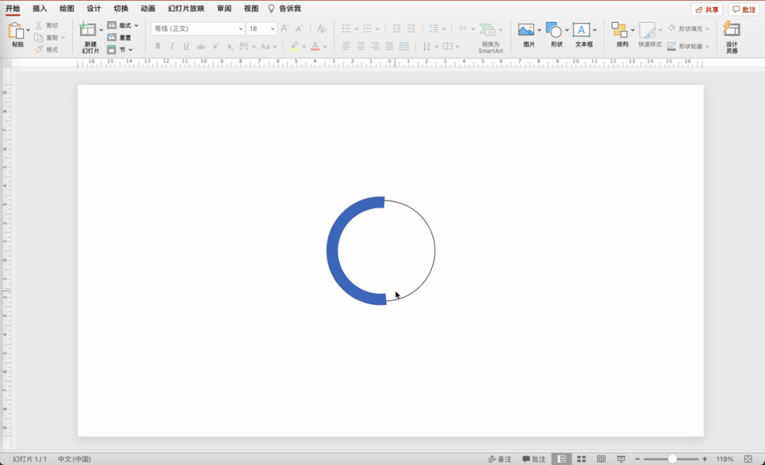 插入“空心弧”形,在基础形状中可以找到它。