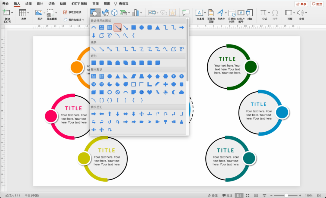 使用形状中的直线,进行连接。