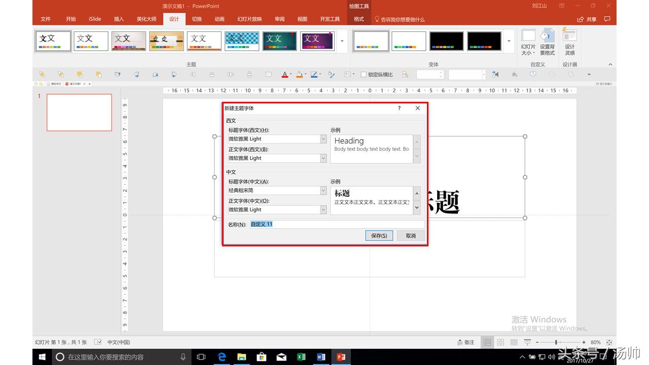 设置的位置:设计选项卡-变体-字体