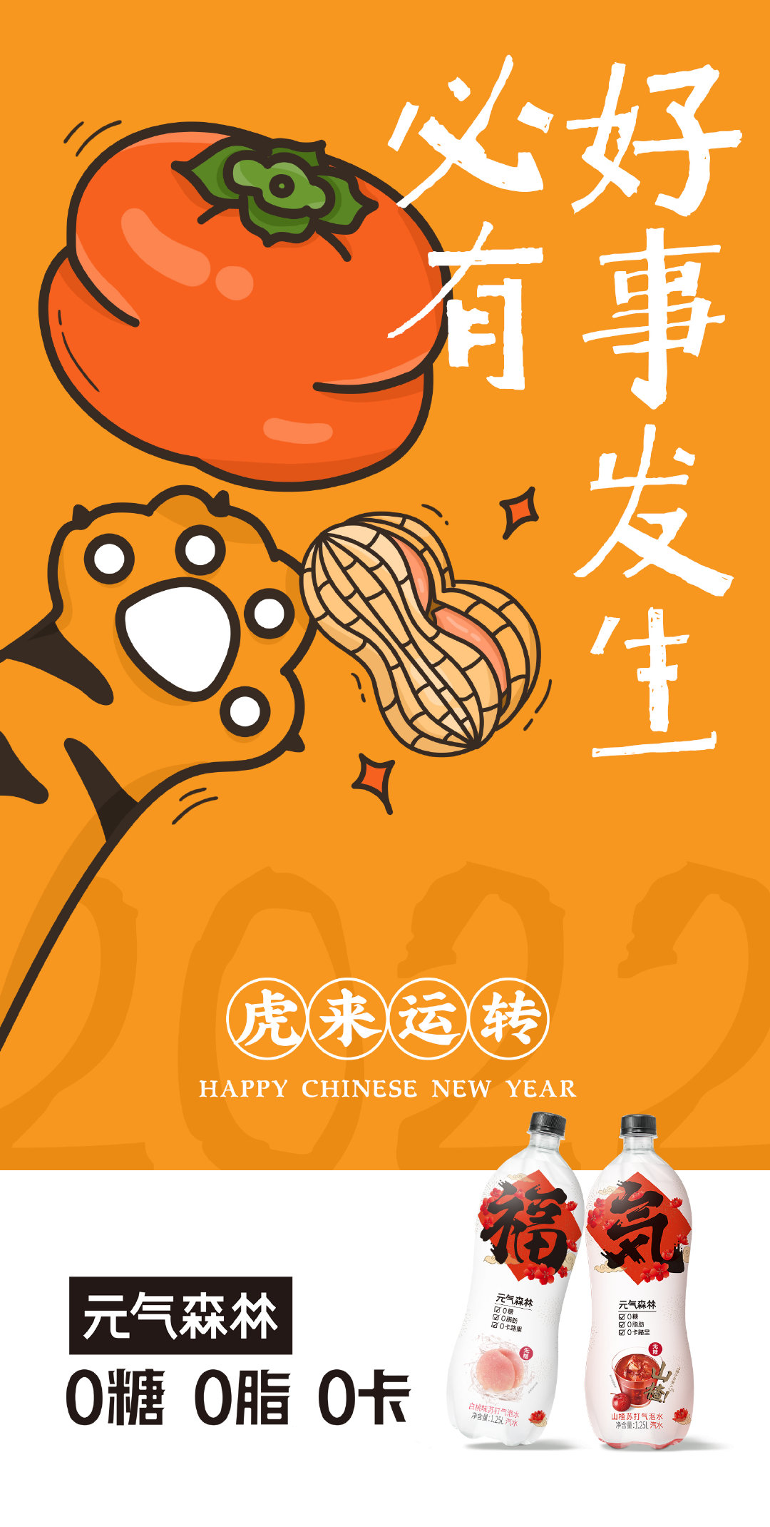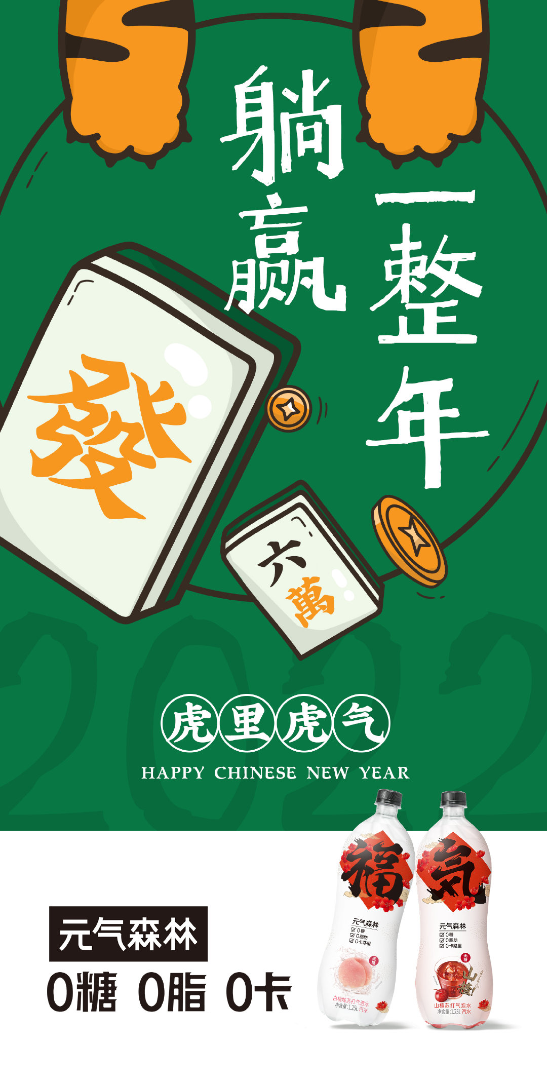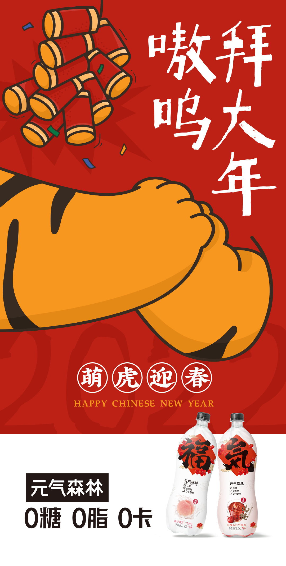 就比如下面这一组关于虎年的宣传海报,虽然只是露出了老虎的爪子和尾巴,还有一些庆祝新春的要点,比如红包、汽水、麻将、柿子、花生、鞭炮等,但是整体的氛围却充满了热情!