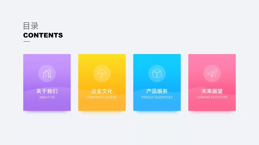 我们再来看一些也是使用了简单形状的PPT案例!比如这里,也是使用了简单的色块进行了虚化和模糊的处理: