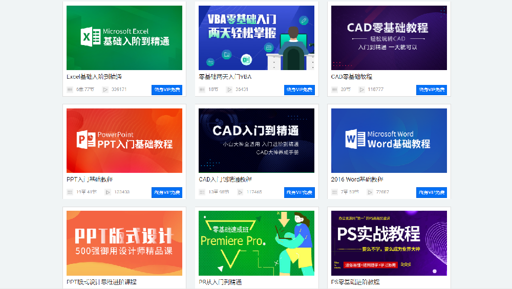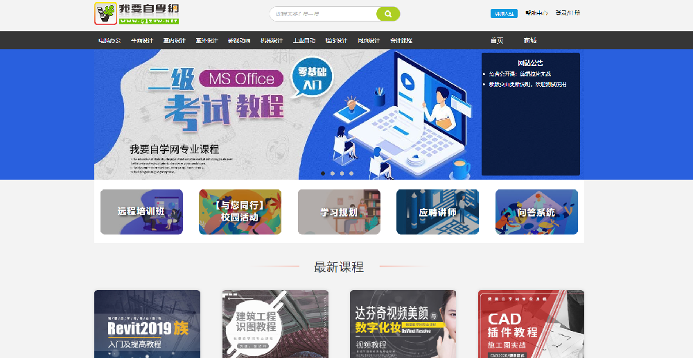 顾名思义,这是一个用于自学的网站,上面有着各自各样的教程可以给网友们学习,包括办公类、平面设计类、工程类等等,可以说是非常全面了。而且教程里前面部分视频都是可以免费观看的,第一次知道这个网站的时候我真的是直呼良心。