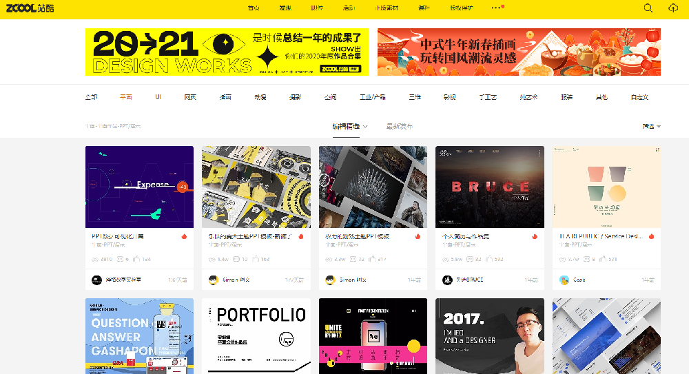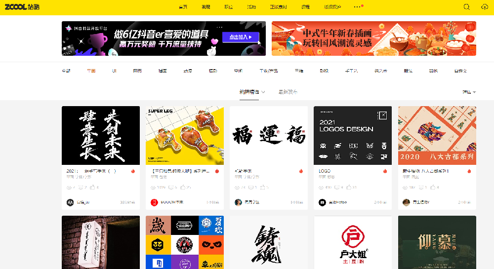 很多国内的设计大神都在这里发布作品,站内有着平面、UI、动漫、网页等多种类型的设计作品。