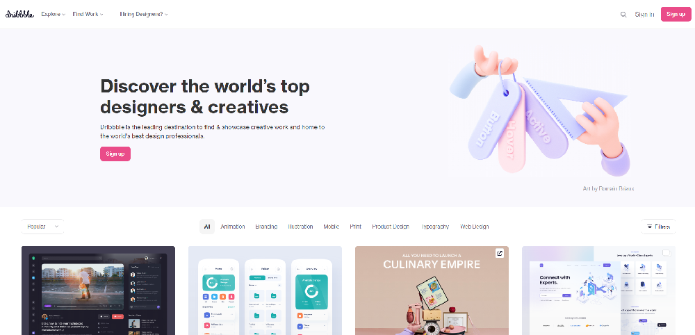 Dribbble是世界性的设计网站,首页直接就用英文打出了口号——汇聚世界顶尖的设计师和创意。