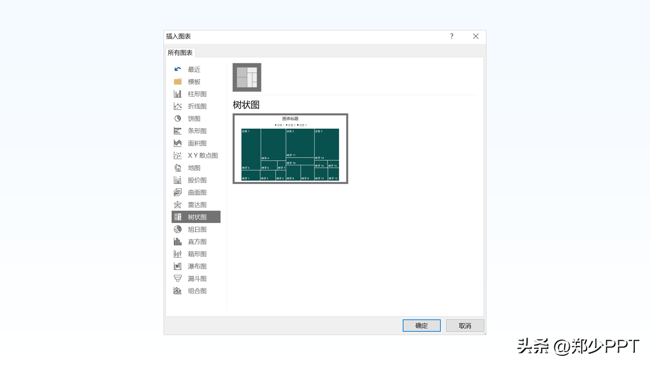 其实,树状图应用比较广泛,点击图表,选择树状图。