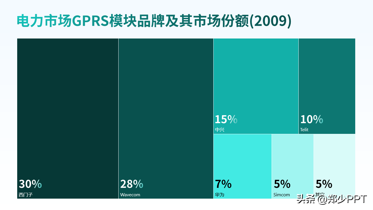 对于职场中的PPT,最怕的就是一组数据,比如这种大饼图。