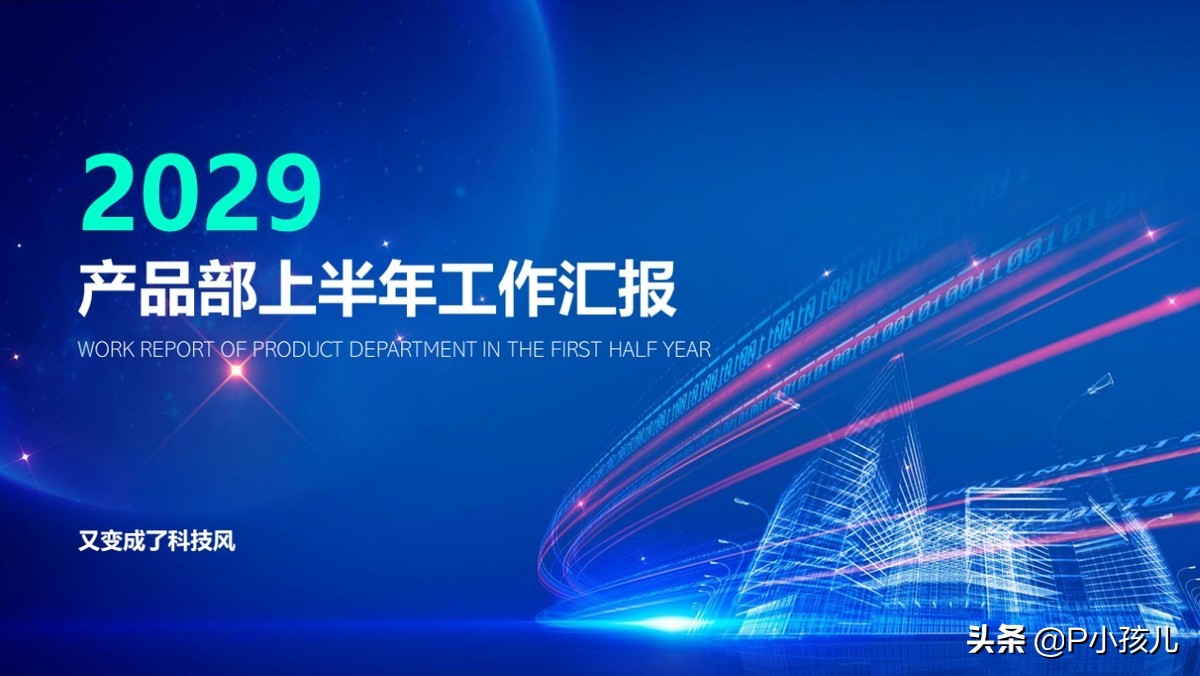 再换个背景,改变一下形状的类型和颜色,一页科技风的PPT就完成了。