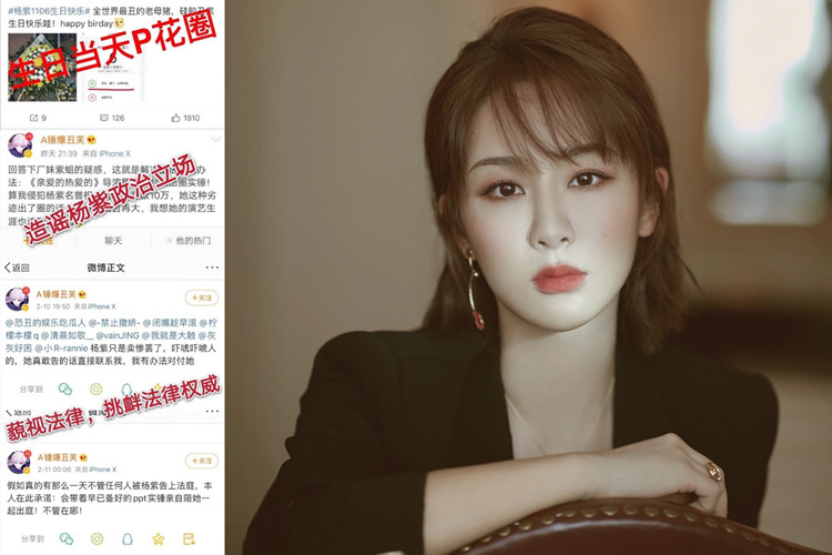 “锤爆丑芙”在攻击杨紫的时候,其内容可以说是令人发指,就比如说该“紫黑”曾在杨紫生日当天P花圈,污言秽语的侮辱杨紫。