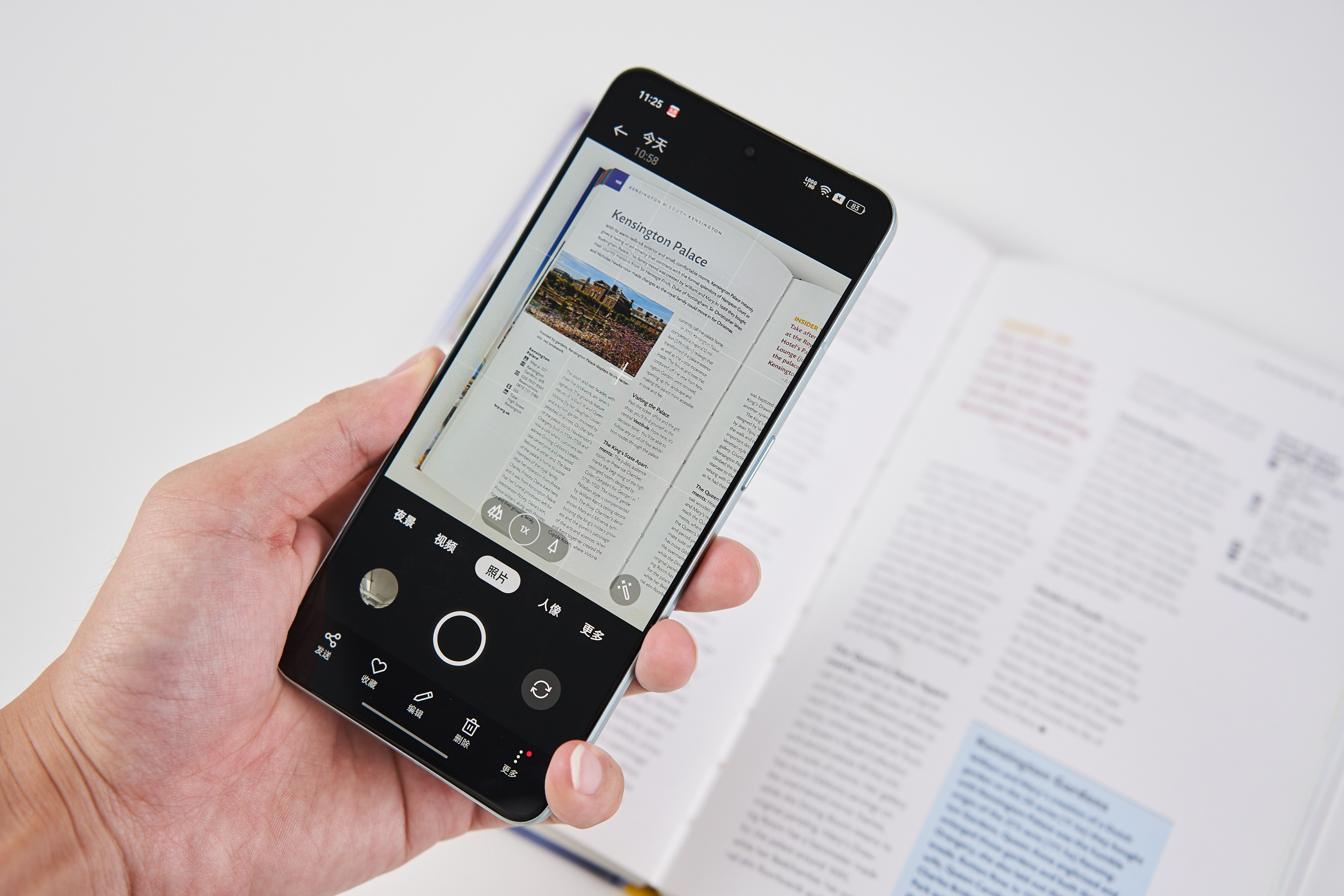 实际上,OPPO Reno8 Pro+所内置的ColorOS 12,在生产力方面的助力,远不止一个小窗和分屏这么简单。它也有着使用体验不逊色于实况文本功能的超级文本。只需要打开内置的相机,选择超级本文功能,进行拍摄之后。在相册中就能看到超级文本的图集。点开对应的照片,就能够进行编辑。最为基础的操作,就是通过识别矫正图片,从而达到堪比扫描仪的效果。