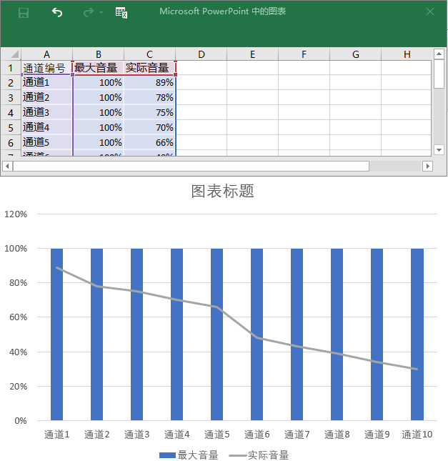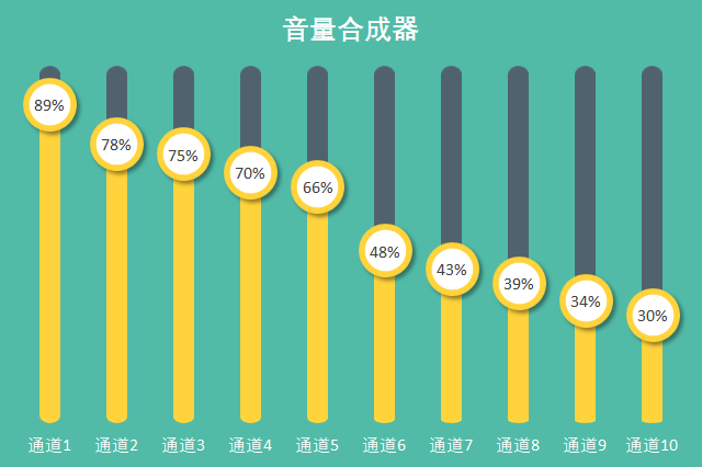 今天我们要在组合图表:折线图+柱形图的基础上制作出下面的音量控制台效果。